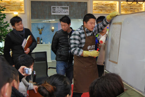 一個優秀的經銷商不僅需要在蒙太奇硅藻泥·手工壁紙總部學習產品理論知識、專業施工節能以及市場營銷策劃等方面的知識,還需要在專業老師的指導下,真正實現理論與實踐的結合。